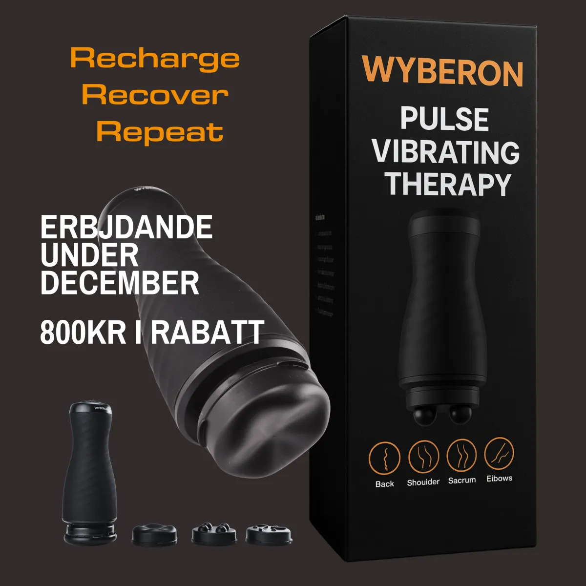 Just nu får du hela Wyberon PRO inklusive tre extra massagehuvuden och premiumväska.